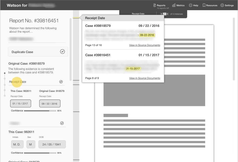 Design Concept: Original concepts that I tested with potential buyers was based upon the identifying case reports in literature and was to be another tool for Watson for Drug Discovery.