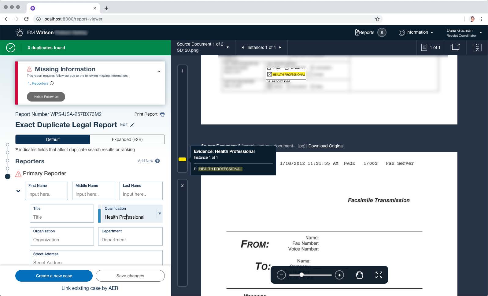 Implemented Software: The Individual Case Report view included evidence highlighting within the cases documentation that eliminated the need for the user to scroll and scan the multiple long case documents.